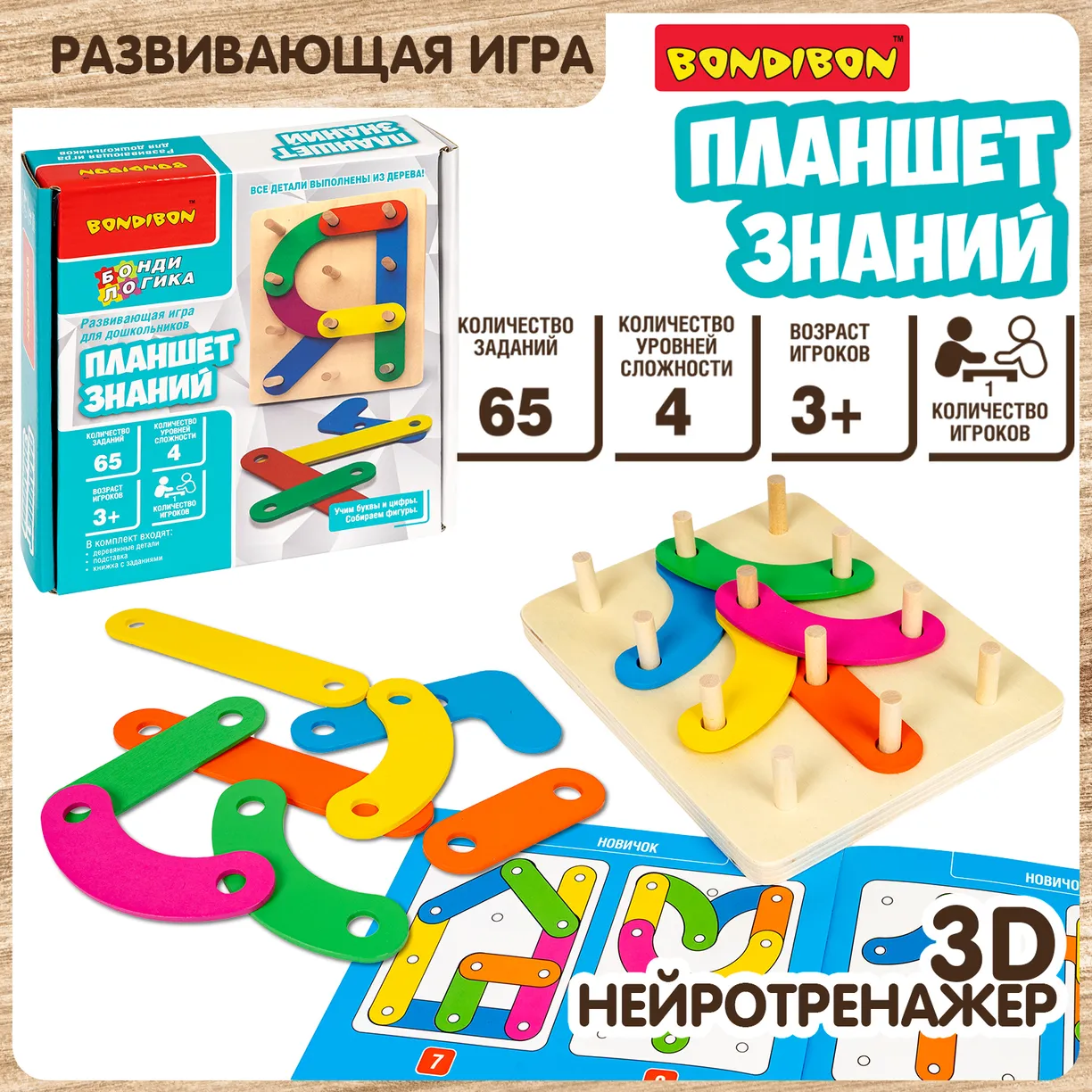 Настольная игра Bondibon логическая ПЛАНШЕТ ЗНАНИЙНастольная игра Планшет знаний серии БондиЛогика от Bondibon – это развивающая и обучающая головоломка, которая помогает детям изучать геометрические фигуры, буквы алфавита и цифры. Деревянный геоборд — идеальный конструктор для подготовки к школе, занятий дома или в детском саду. Полезный подарок мальчику и девочке день рождения, новый год, 8 марта или 23 февраля. Игровой набор […]