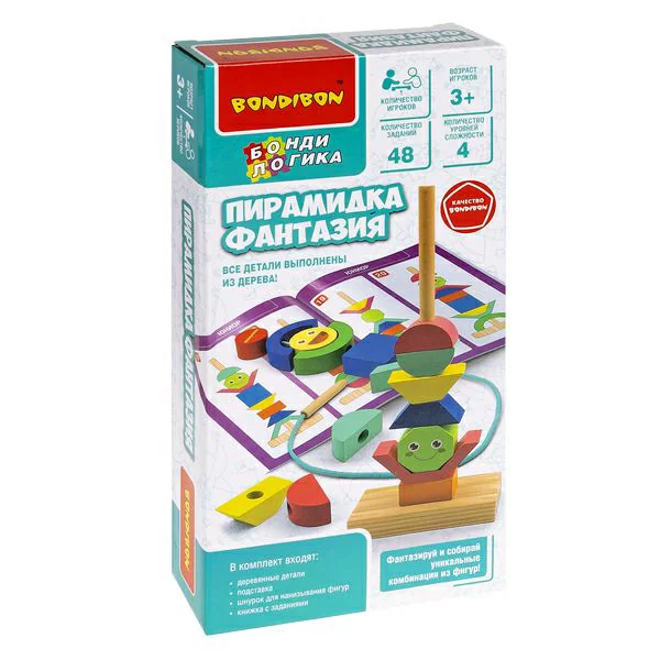 Игра-головоломка Bondibon Бондилогика «ПИРАМИДКА ФАНТАЗИЯ», BOXВеселая головоломка-конструктор, которая создана специально для маленьких детей! Настольная логическая игра ПИРАМИДКА ФАНТАЗИЯ серии БондиЛогика от Bondibon содержит 48 заданий разных уровней сложности и яркие детали из дерева. Выберите задание в зависимости от возраста игрока. Повторите изображенную на карточке композицию, нанизывая детали на колышек или шнурок. Такой пальчиковый тренажер эффективно развивает зрительное и тактильное восприятие, […]