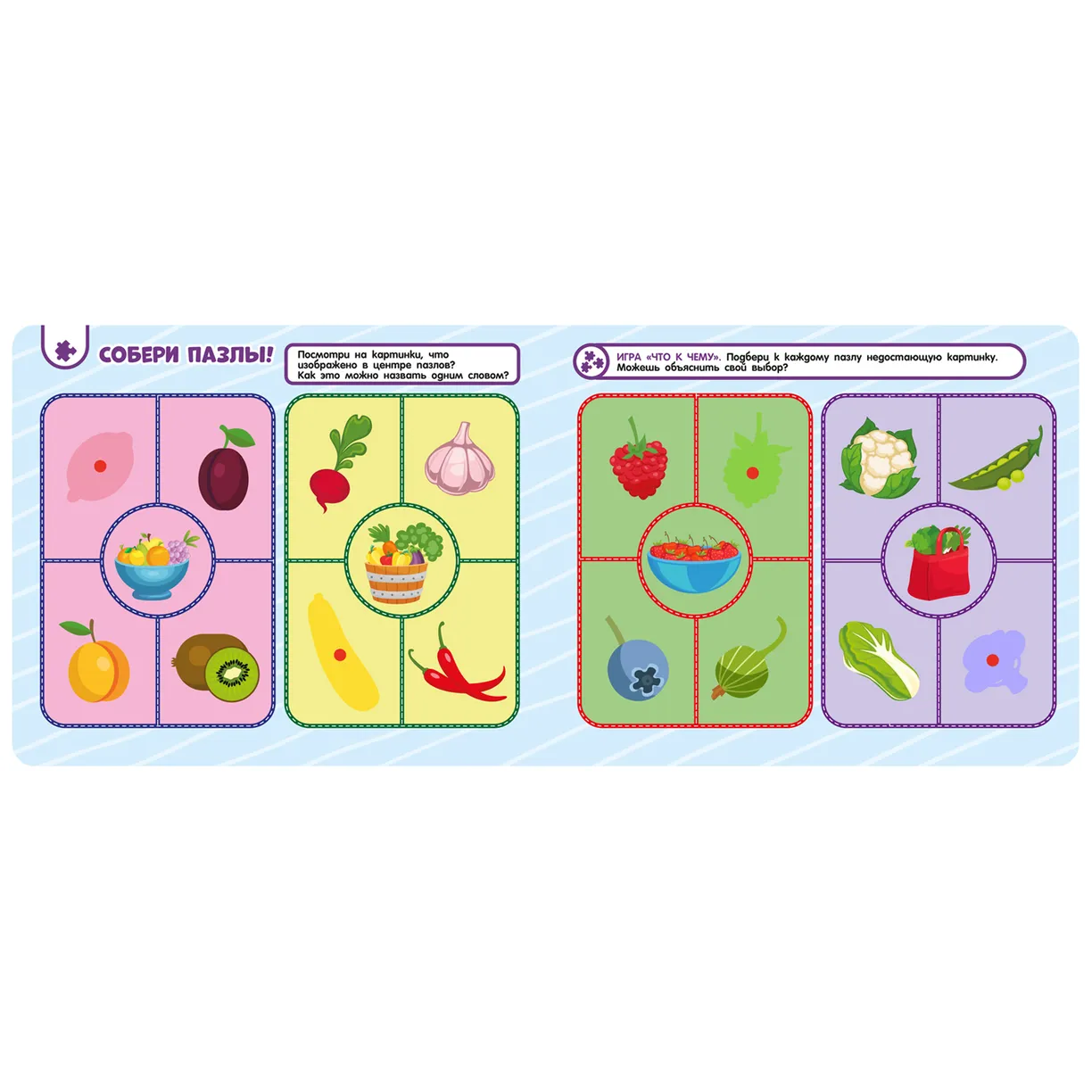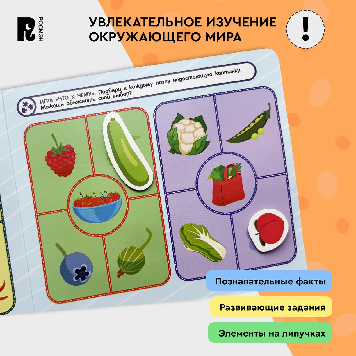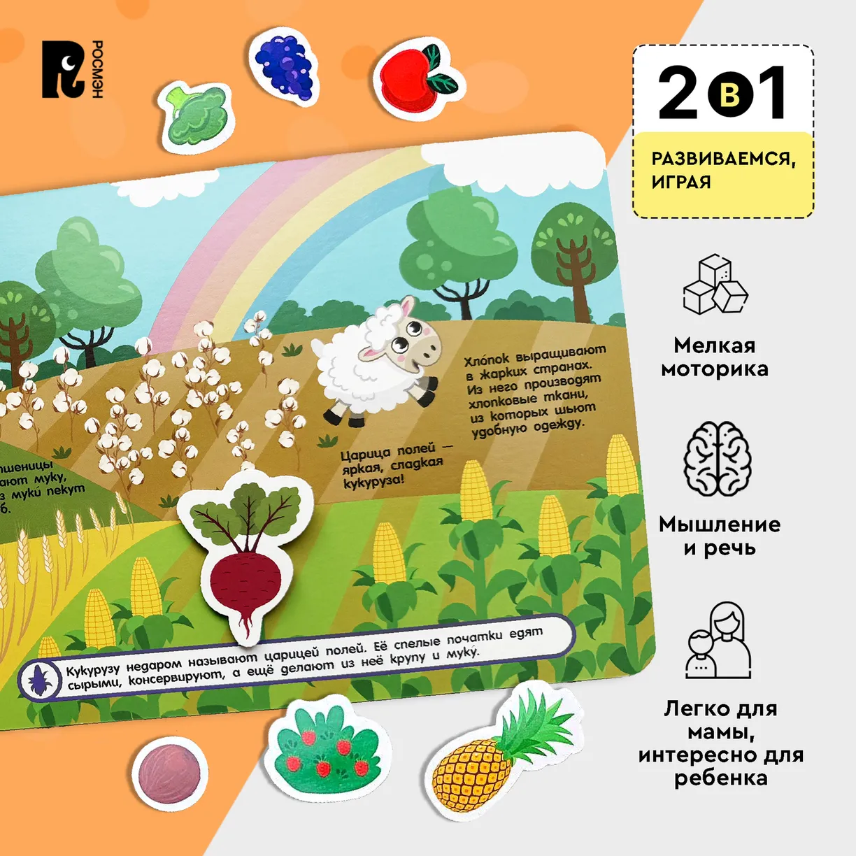 Книжка с липучками «Овощи и фрукты» — это яркие иллюстрации и интересные задания!