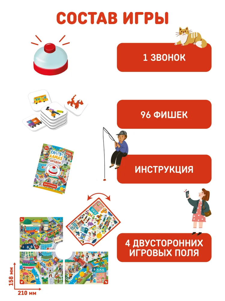 Ах, наступило время чудес и волшебства! Представляем вам настоящий шедевр среди настолок — интересную развивающую головоломку, созданную специально для детей от 5 лет и старше! В коробке Вы найдете огромное игровое поле, азартный звонок и комплект из 96 мини-карточек фишек. Правила просты, а процесс очень интересный! Почувствуйте себя настоящими исследователями и совершите крутое путешествие по миру фантазий. Игрушка станет отличным новогодним сюрпризом под ёлку и оригинальным подарком в день рождения мальчику или девочке. Этот детский набор предлагает увлекательный новый способ провести семейное время, объединяя малышей и взрослых. Всё благодаря волшебным правилам классической игры на внимательность для улучшения скорости реакции. Игра способна развивать коммуникативные навыки между детьми любого возраста в незнакомой компании, в детском садике вместе с друзьями. Она развивает моторику у малышей, тренирует быстроту реакции и улучшает навык построения речи. Родители оценят полезность игрового занятия: развитие интеллектуальных навыков детей сейчас происходит легко и непринуждённо! Волшебные и смешные, милые и прикольные герои и сюжет — всё это будет интересно и малышам 3-4 лет, и даже школьникам. Плотный картон игры приятен на ощупь; он безопасен даже для самых маленьких игроков.