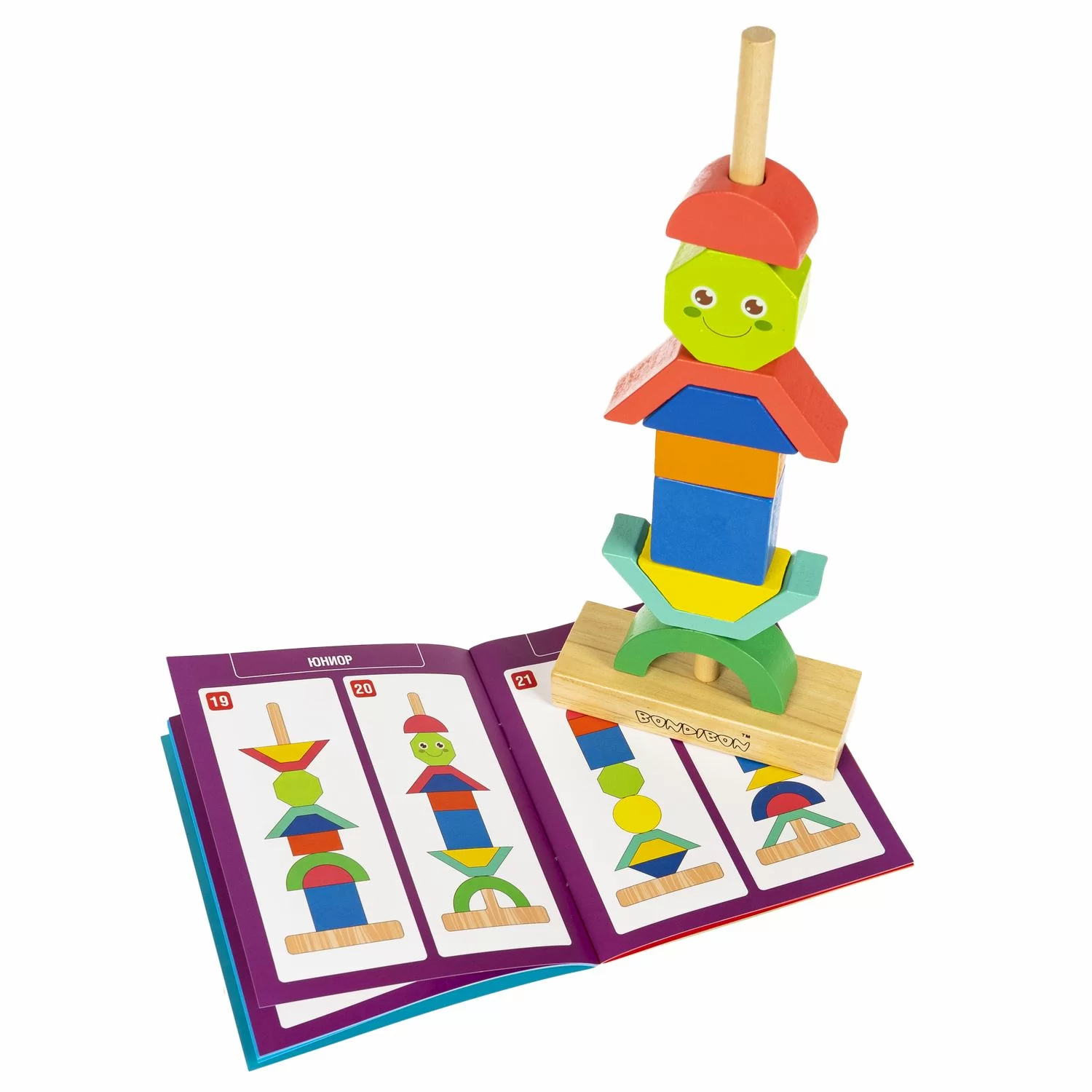 Настольная логическая игра ПИРАМИДКА ФАНТАЗИЯ серии БондиЛогика от Bondibon содержит 48 заданий разных уровней сложности и яркие детали из дерева.
