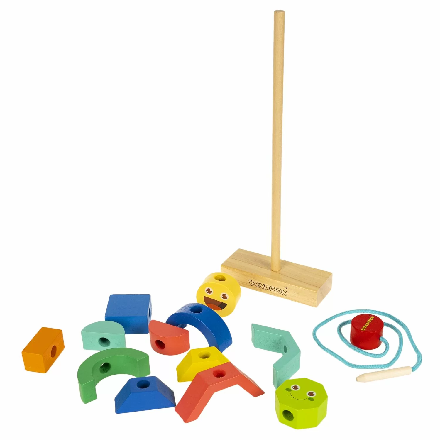 Выберите задание в зависимости от возраста игрока. Повторите изображенную на карточке композицию, нанизывая детали на колышек или шнурок. Такой пальчиковый тренажер эффективно развивает зрительное и тактильное восприятие, мелкую моторику, внимание, логику, пространственное мышление. Сортер также помогает в изучении основных цветов и различных геометрических фигур.
