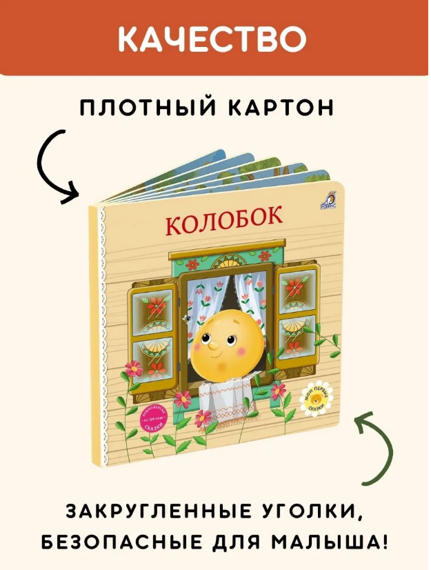 Книжка-картонка «КОЛОБОК» – пересказ всеми любимой русской народной сказки. Эта добрая и поучительная сказка поможет ребёнку лучше понять мир. Её народная мудрость даст малышу первое представление о добре, зле и справедливости. Рассматривайте красочные иллюстрации, читайте сказку и обсуждайте прочитанное с ребёнком. Что найдем внутри: Всеми любимая первая сказка для малышей. Красочные иллюстрации.