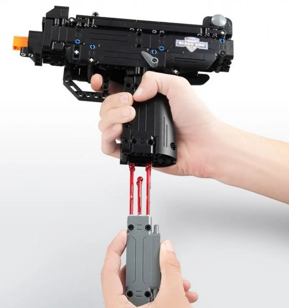 Micro Uzi разнообразит игру мальчишки не только в период сборки, но и во время игры с почти настоящим оружием. Пистолет стреляет пульками, не наносящими вред здоровью. Процесс зарядки пулек предельно прост и соответствует настоящему оружию, а стрельба впечатляет.