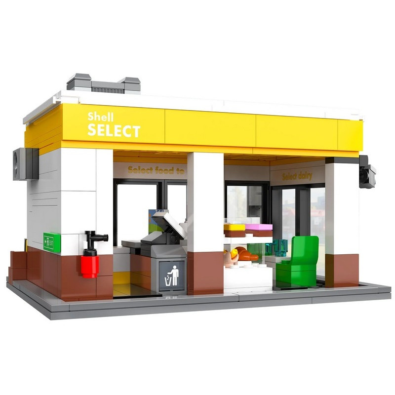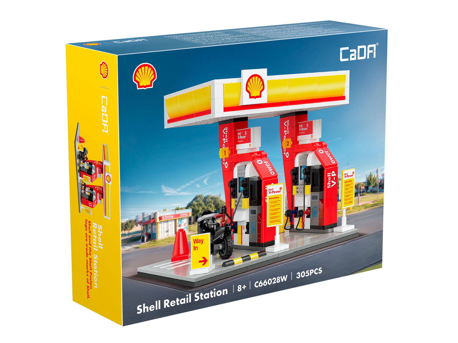 Конструктор от CADA для постройки Минимаркет Shell Select из 303 деталей. CaDA Shell Retail Station является официально лицензированным продуктом. Воспроизводит наиболее распространенную схему расположения розничных станций Shell.