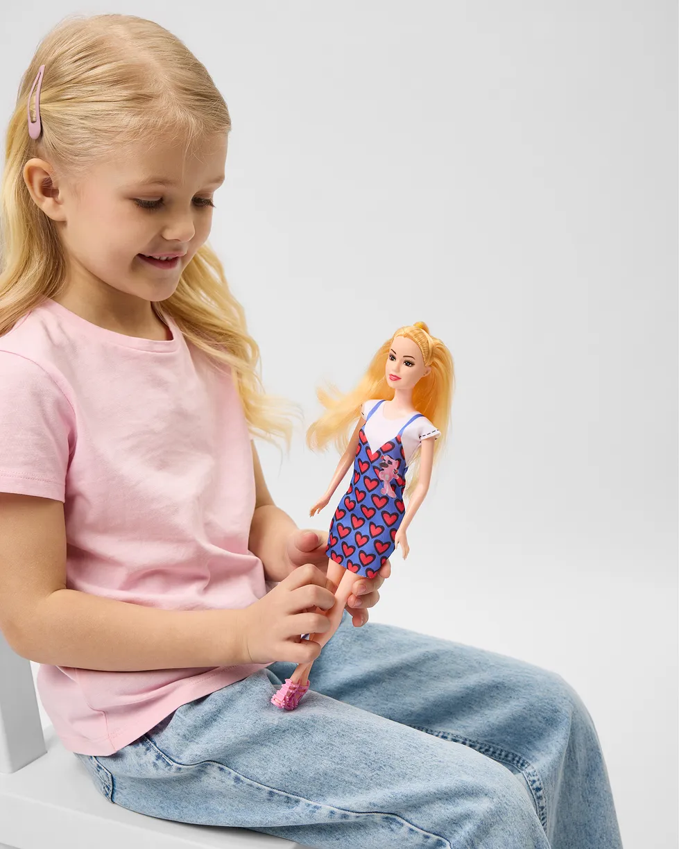 Стильная кукла, с которой играть –– одно удовольствие! У неё густые длинные волосы –– их приятно расчёсывать, заплетать и укладывать в красивые причёски. А модный повседневный наряд идеально подходит для любых приключений –– от неспешных прогулок до шумных вечеринок. С ней девочка сможет воплотить в жизнь любую историю!
