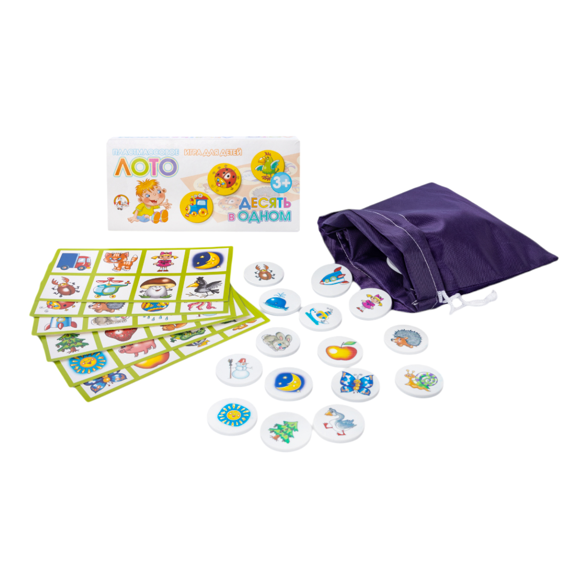 Пластмассовое лото «10 в 1» развивает память, внимание, мелкую моторику рук, помогает освоить навыки обобщения и расширить кругозор.