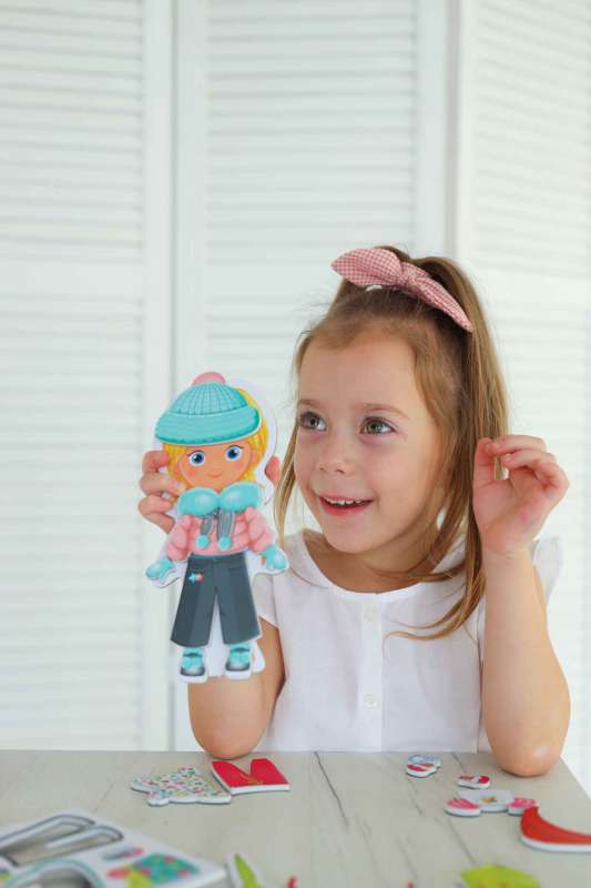 Магнитная игра-одевашка «Времена года» — увлекательное занятие для вашего ребенка. В наборе фигурка куколки и элементы одежды на каждое время года. Предложите малышу одеть героиню самостоятельно. Подскажите, как правильно одеваться зимой, а как летом.