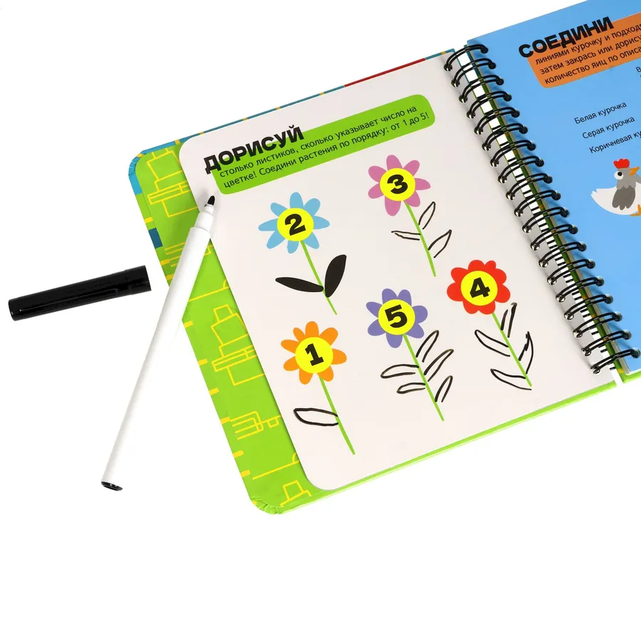 МАЛЫШИ ДУМАЮТ И СЧИТАЮТ — это набор многоразовых карточек с яркими и увлекательными заданиями на логику и базовый счёт до пяти. Игра не только просто развлечет ребёнка, но и поспособствует развитию логического и пространственного мышления, а также поможет сделать первые шаги в счёте. Карточки многоразовые — можно пробовать различные варианты, не боясь ошибиться! Все надежно закреплено в компактной книжке на пружинке. Занимайтесь дома, в дороге, в машине, у бабушки.