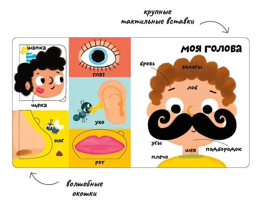 — Яркие иллюстрации, тактильные вставки и большие окошки