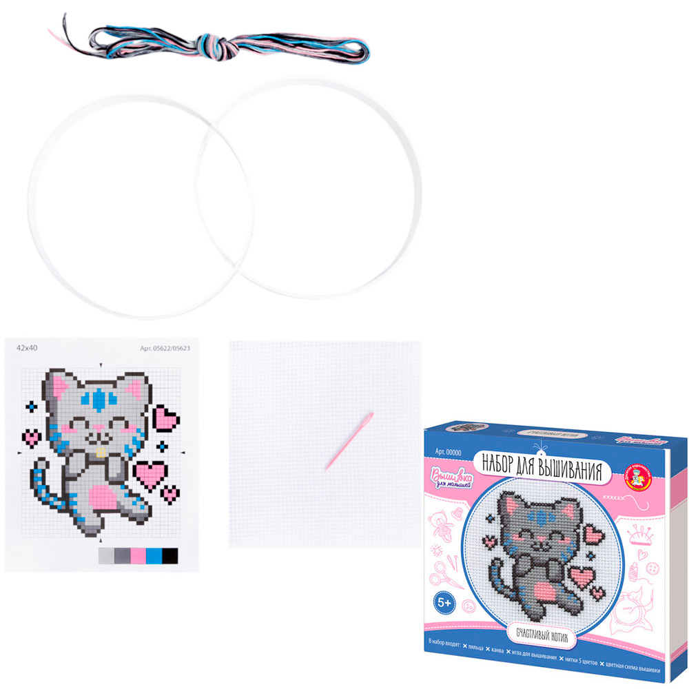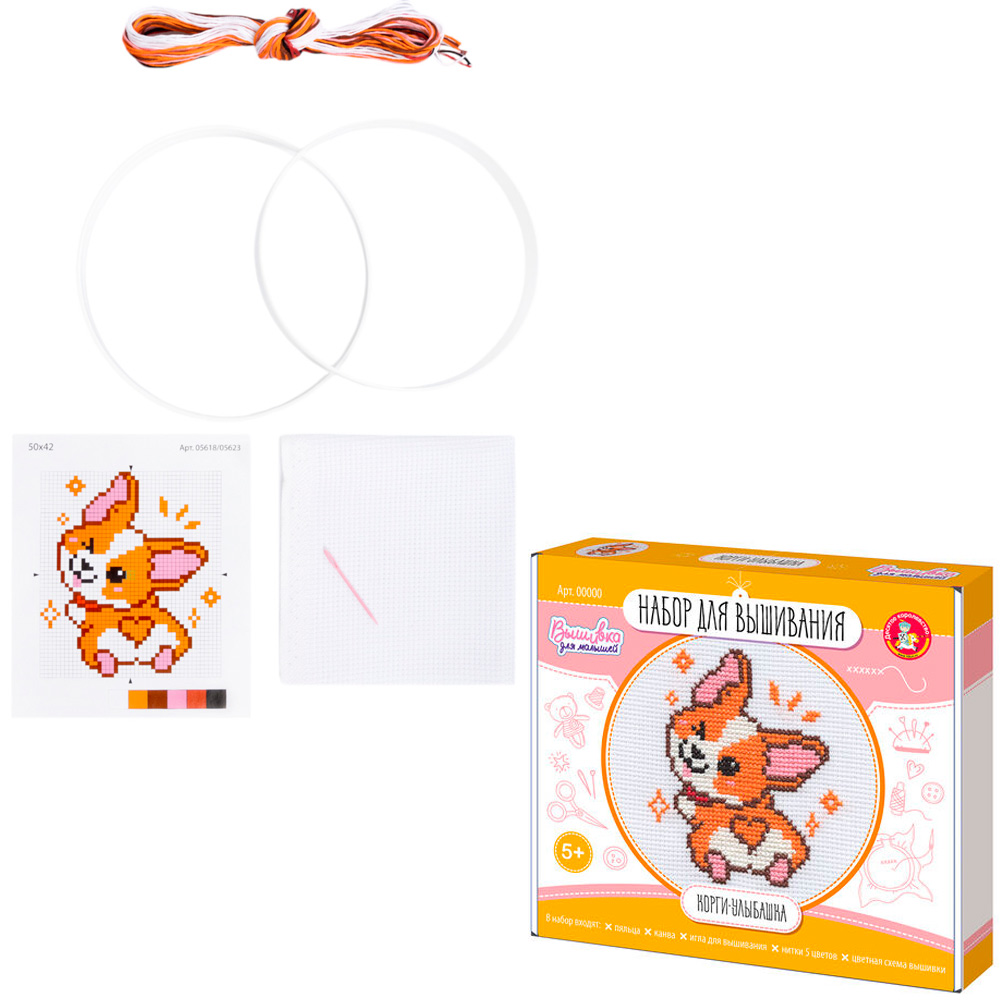 Комплектация: нитки — 6 цв., игла — 1 шт., схема — 1 шт., пяльца — 1 шт., канва — 1 шт.