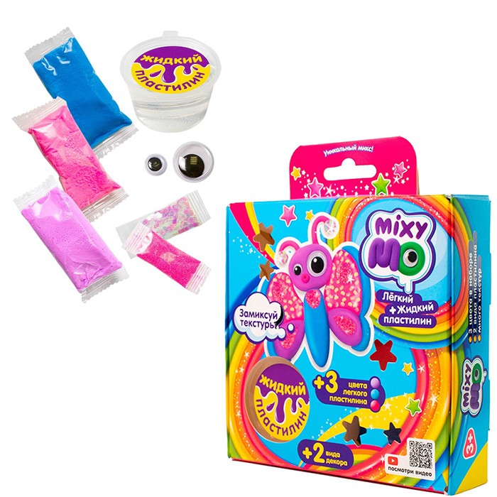 MixyMo это целый набор крутейшего мягкого воздушного пластилина разных ярких цветов, который сам научит вашего ребёнка всем тонкостям лепки. Ребёнок с 3-х лет легко сможет сделать из пластилина интересных и таинственных существ. Застывает пластилин на воздухе за 12 часов — слепленными фигурками потом можно играть. Пластилин воздушный, яркий и легкий, не остается на руках. Набор для творчества отличная идея подарка и досуга для мальчиков и девочек. В закрытом пакетике воздушный пластилин не высыхает в период срока годности. Создавайте свои шедевры вместе с уникальной комбинацией легкого и жидкого пластилина. Экспериментируйте с текстурами набора для создания своих удивительных творений.В наборе: 1) 3 цвета легкого пластилина 2) Жидкий пластилин 3) Бегающие глазки 4) 2 вида текстур. Инструкция для сборки персонажей находится по ссылке на QR-коде на YouTube. Легкий пластилин — это не только игра и развлечение. лепка из воздушного пластилина развивает мелкую моторику рук, координацию, фантазию и воображение. Пластилин не пачкается и для него не нужны какие-либо специальные доски.