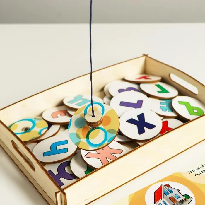 - Переверните все фишки с буквами, предложите ребенку вытянуть удочкой одну из фишек и назвать букву на ней. Задача игроков — придумать как можно больше слов, начинающихся с данной буквы.