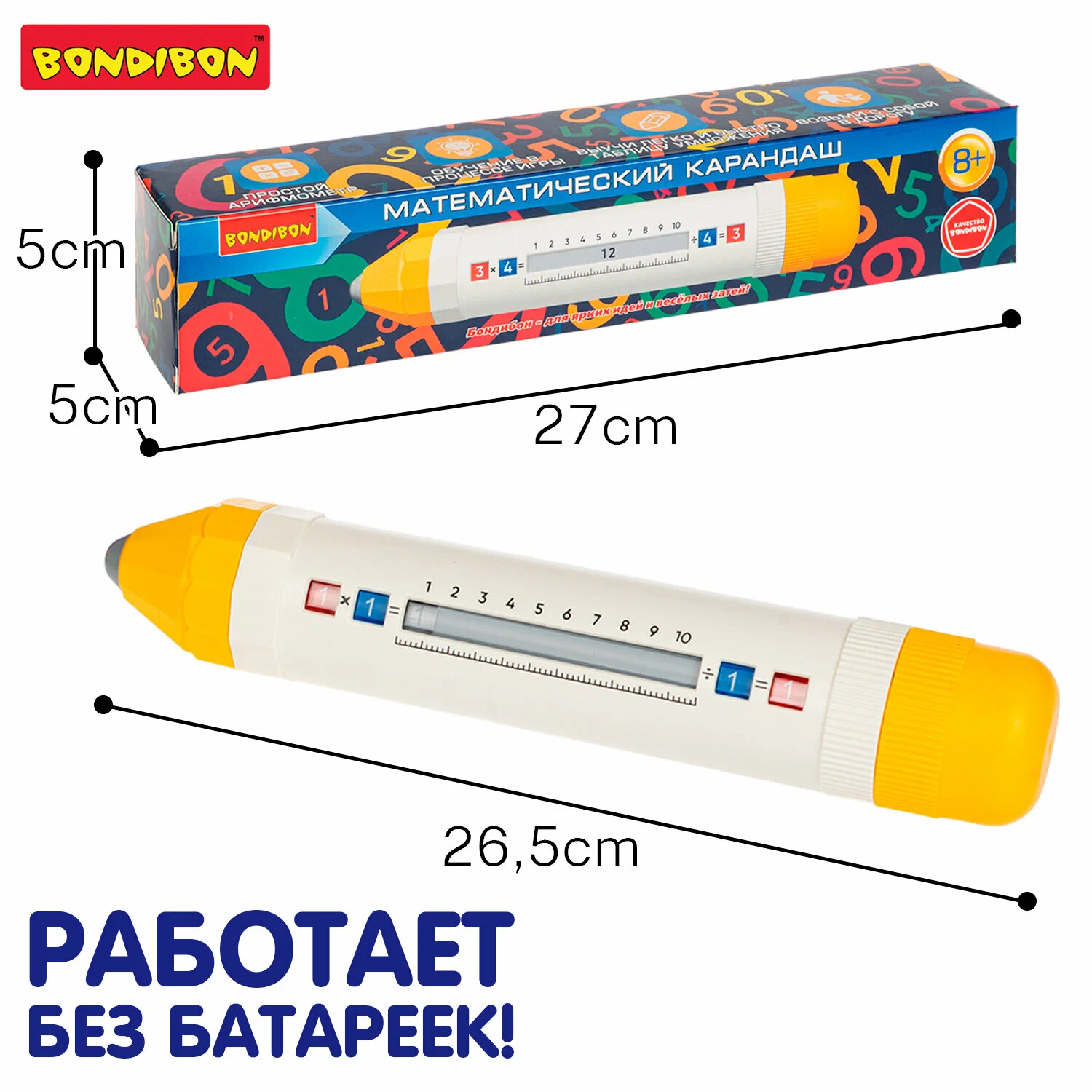 Главная | Развитие и обучение | Математика | Обучающий арифмометр "МАТЕМАТИЧЕСКИЙ КАРАНДАШ", тм Bondibon, умножение и деление, ВОХ 26,7х5х5см.