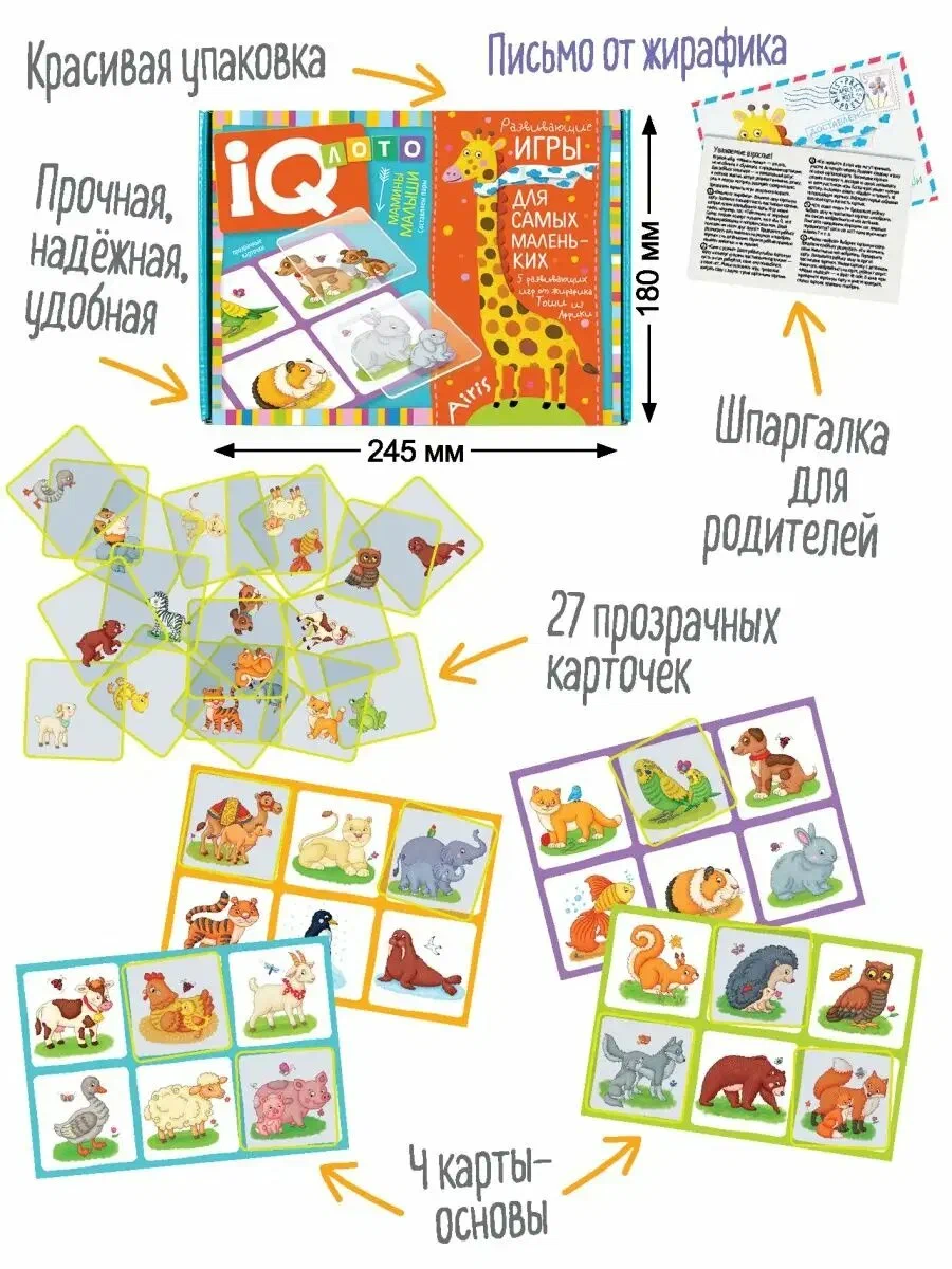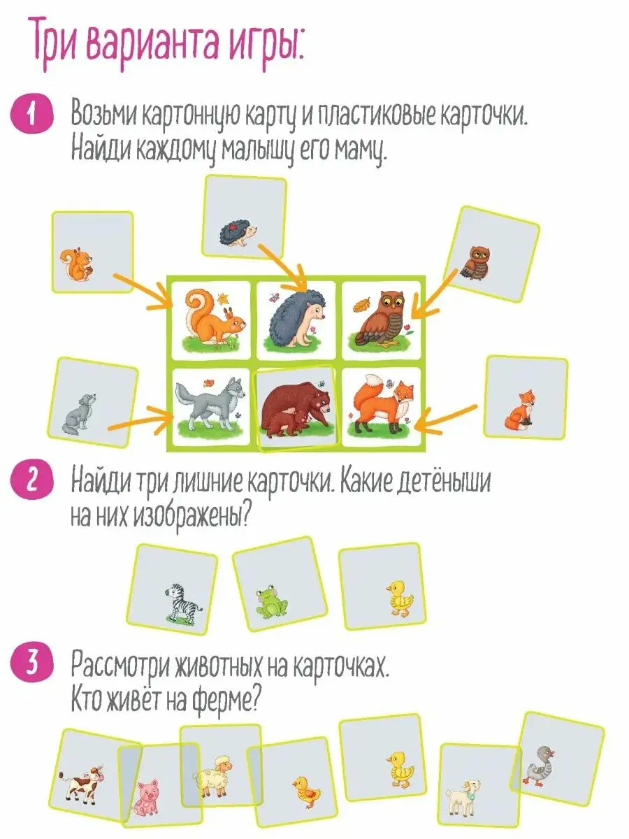 Особенностью данного лото является то, что на пластиковых карточках изображены детеныши этих животных. Вашему ребенку предстоит помочь каждой маме-зверушке отыскать своего малыша. Это не только весело, но и полезно, так как учит сопоставлять и анализировать.