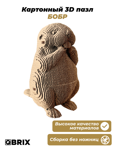 QBRIX Картонный 3D конструктор Бобр