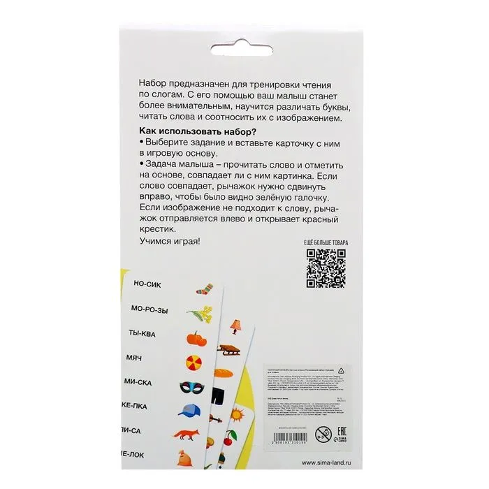 Развивающий набор «Тренажёр для чтения» предназначен для подготовки к школе и тренировки чтения по слогам. С его помощью ваш малыш станет более внимательным, научится различать буквы, читать слова и соотносить их с изображением.