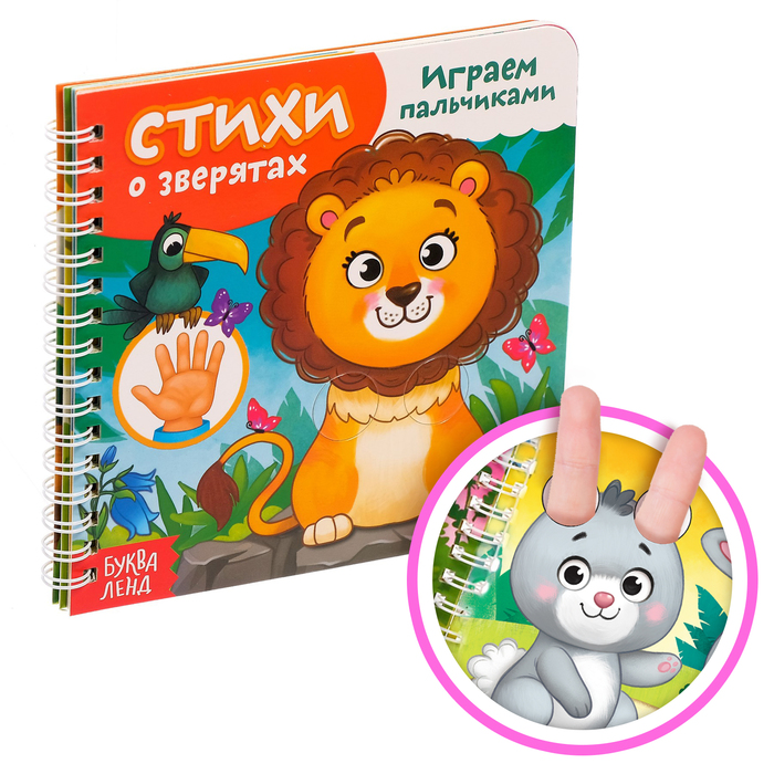 Картонная книга «Играем с пальчиками. Стихи о зверятах», 12 стр.Картонная книга создана для весёлого чтения и игры. В ней есть специальные прорези для пальчиков, с помощью которых малыш может оживить картинку: сделать козе рожки или ушки зайчику. Читайте и играйте вместе с крохой!