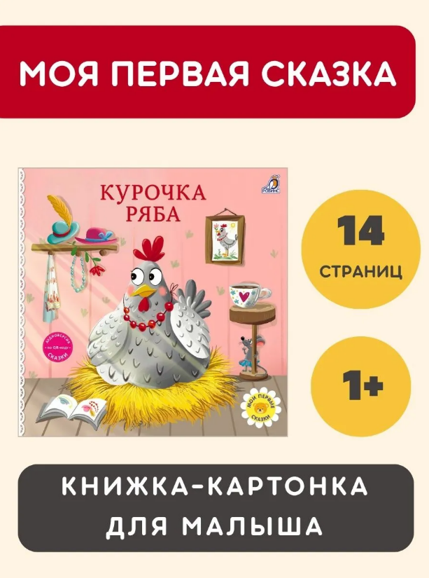 Книжки — картонки. Сказки. Курочка рябаКнижка-картонка «КУРОЧКА РЯБА» – пересказ замечательной русской народной сказки. Эта добрая и поучительная сказка поможет ребёнку лучше понять мир. Её народная мудрость даст малышу первое представление о добре, зле и справедливости. Рассматривайте красочные иллюстрации, читайте сказку и обсуждайте прочитанное с ребёнком. Что найдем внутри: Всеми любимая первая сказка для малышей. Красочные иллюстрации.